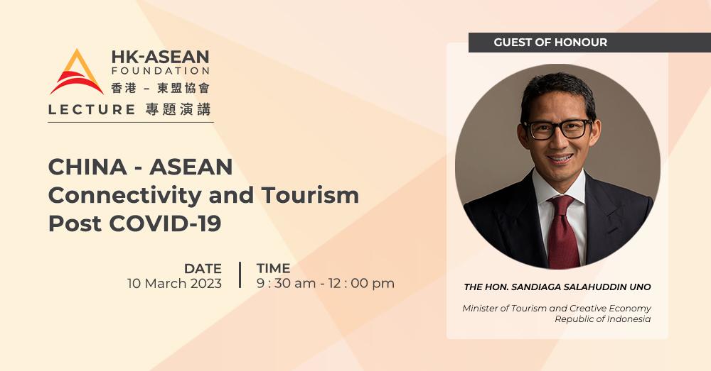Hong Kong-ASEAN Foundation is privileged to host The Hon. Sandiaga Uno, Minister of Tourism and Creative Economy of the Republic of Indonesia, who will share his insights on the topic "China - ASEAN Connectivity and Tourism Post COVID-19".